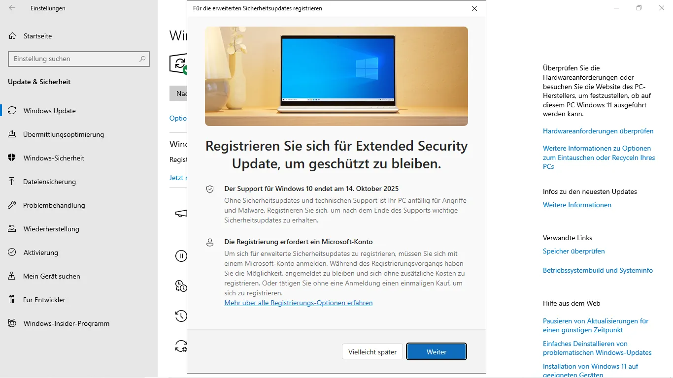 Microsoft hat europäischen Privatnutzern ein weiteres Jahr kostenlose Sicherheitsupdates für Windows 10 zugesichert.